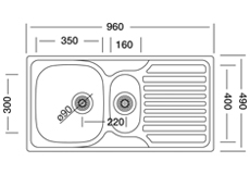 Sink Dimensions : 49 x 96 cm